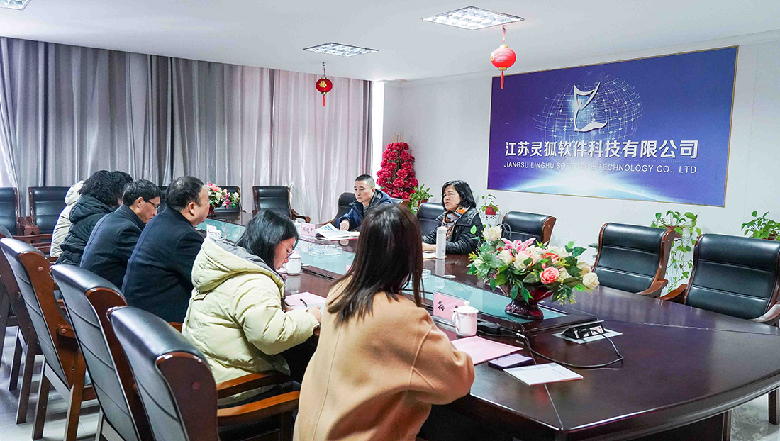 2025年2月19日,江苏商贸职业学院张校长与教务处处长何晓光一行莅临江苏灵狐软件科技有限公司进行交流指导。公司总经理孙法祥携公司高层管理人员热情接待了来访的学院领导,双方就校企合作、专业发展及技术创新等方面进行了深入友好的座谈交流。